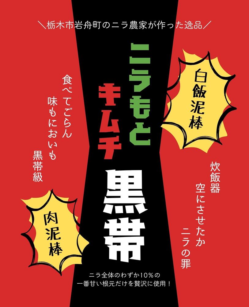 『ニラもとキムチ黒帯』販売開始! 2026.04.08 ライブピアデポ 栃木市岩舟町のニラ農家が作った、ニラ全体のわずか10%の一番甘い根本だけを贅沢に使用。甘口、辛口の2種類。一度食べたら、やみつきになる美味しさ😋店舗で販売開始! PDFを開く